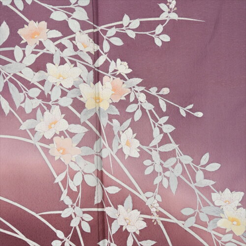 ■0532-39-7660 標準サイズ 身長・・・145cm〜155cm位 洋服サイズ・・・7号〜9号位まで 商品説明 少し赤みのある藤色地に洋花が友禅で描かれた上品な訪問着です。