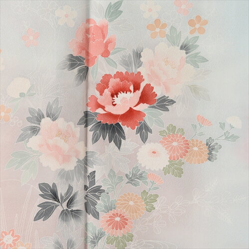 ■0532-39-7660 標準サイズ 身長・・・145cm〜155cm位 洋服サイズ・・・7号〜11号位まで 商品説明 グレー地に淡いピンク色をぼかし、花王と称されるぼたんを描いた訪問着です。