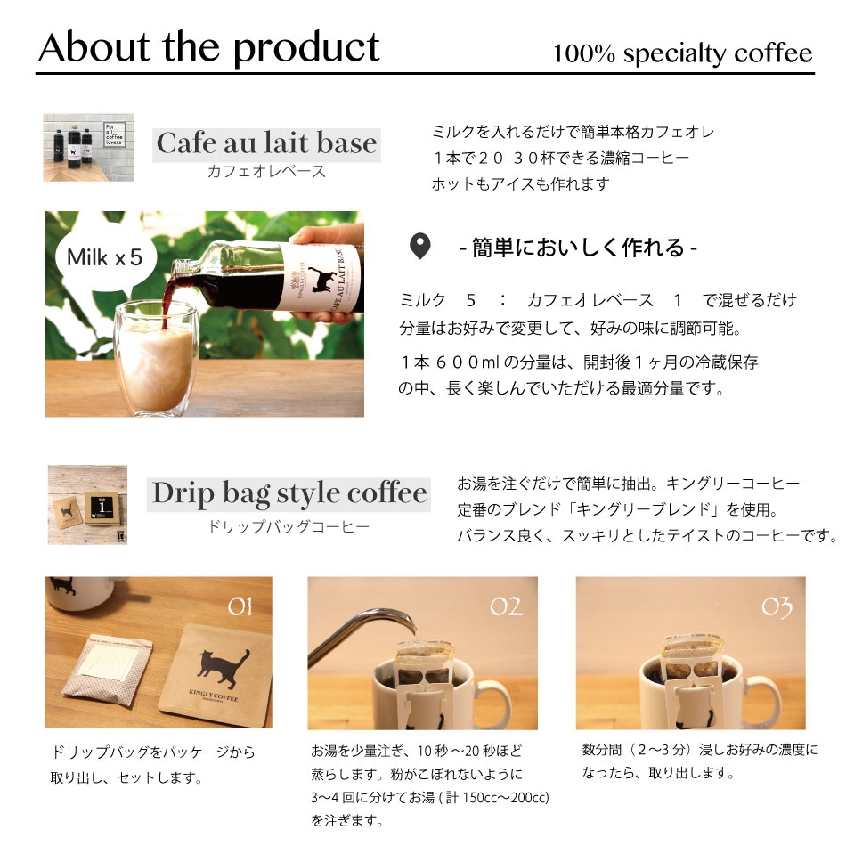 ネコ印ギフトセット 【L】【カフェオレベース加糖2本・ドリップバッグ10個・アイスコーヒー1本】【無添加】【希釈用】【スペシャルティコーヒー】【コーヒー】【ギフト】【プレゼント】【KINGLY COFFEE】