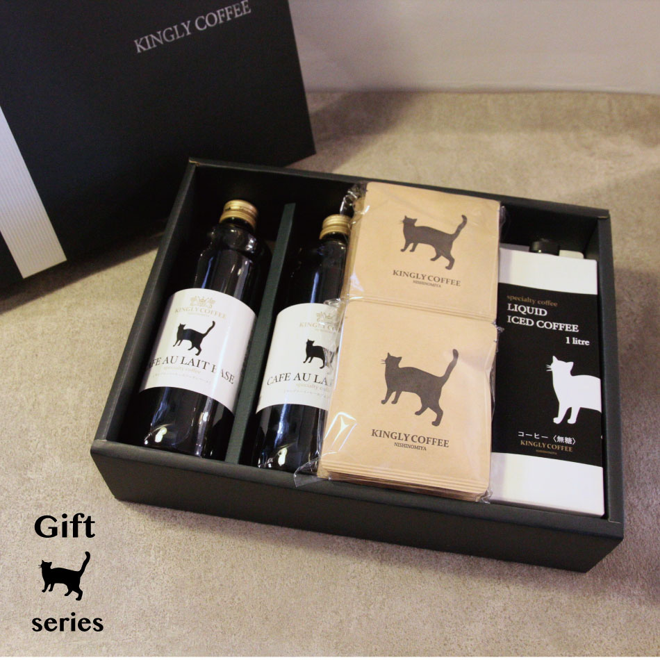 ネコ印ギフトセット 【L】【カフェオレベース無糖1本・ドリップバッグ10個・リキッドアイスコーヒー1本・コーヒー豆200g】【無添加】【希釈用】【スペシャルティコーヒー】【コーヒー】【ギフト】【プレゼント】【KINGLY COFFEE】